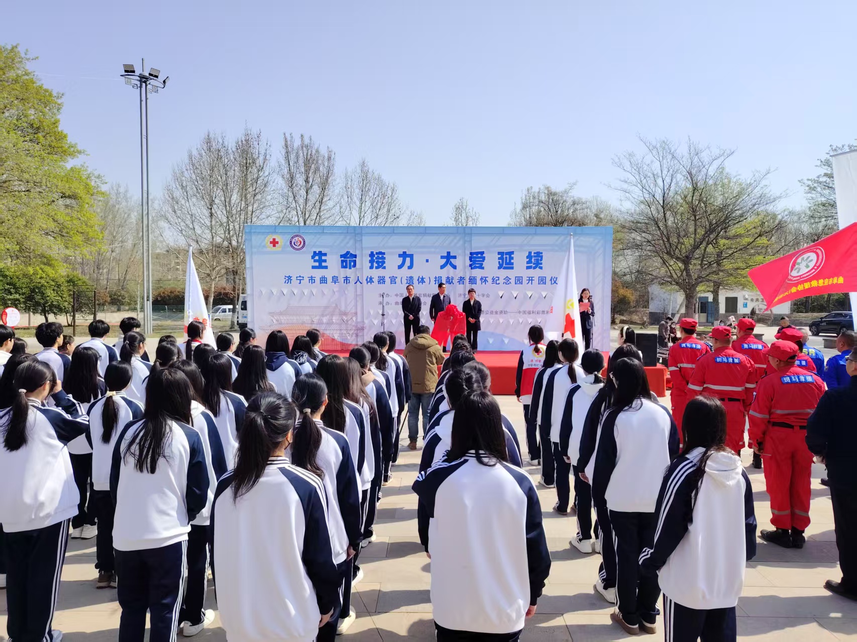 4月1日,曲阜市举办“生命接力·大爱延续”人体器官(遗体)捐献者缅怀纪念活动。济宁市红十字会党组成员、副会长李文彦,曲阜市政府副市长杨林东共同为曲阜市人体器官捐献者纪念园揭牌,标志着捐献者纪念园正式开园。