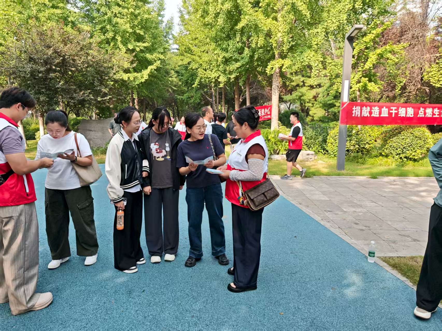 在百花公园活动现场,济宁市红十字会联合济宁红十字心理健康志愿者服务队、济宁贤明公益红十字志愿者服务队以及济宁红十字济医湖畔志愿服务队,共90余人积极参与主题宣传,通过电子屏、灯箱、展板、道旗、横幅等多种形式营造浓厚氛围,向市民发放宣传彩页、折页画册等资料1300余份,耐心讲解无偿献血和捐献造血干细胞科学知识,传播“捐献无损健康”的公益理念。志愿者和热心群众踊跃进行献血咨询、体检检验及血样采集,活动当日,成功采集造血干细胞血样30人份。