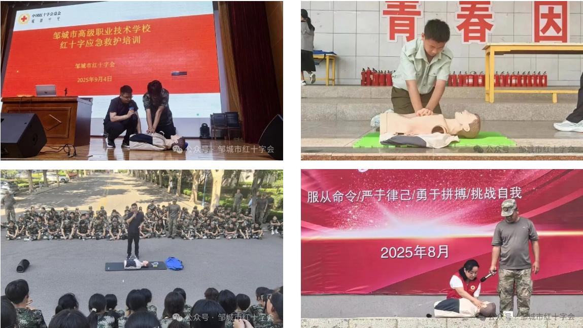 为进一步普及应急救护知识,筑牢校园安全防线,8月19日至9月4日,邹城市红十字会先后在市孟子湖中学、实验中学、兖矿一中、一中、高职校等学校为军训新生开展应急救护培训活动。